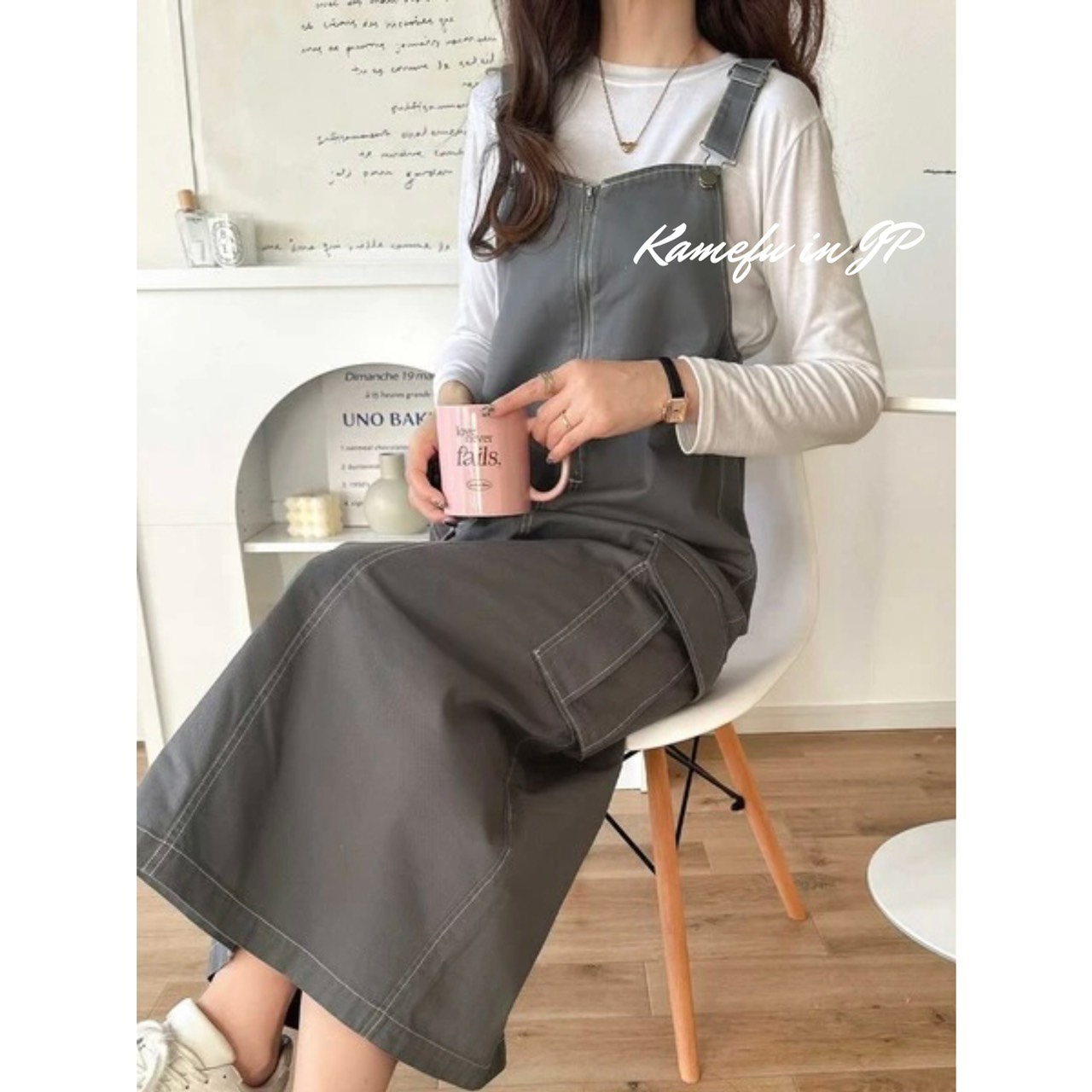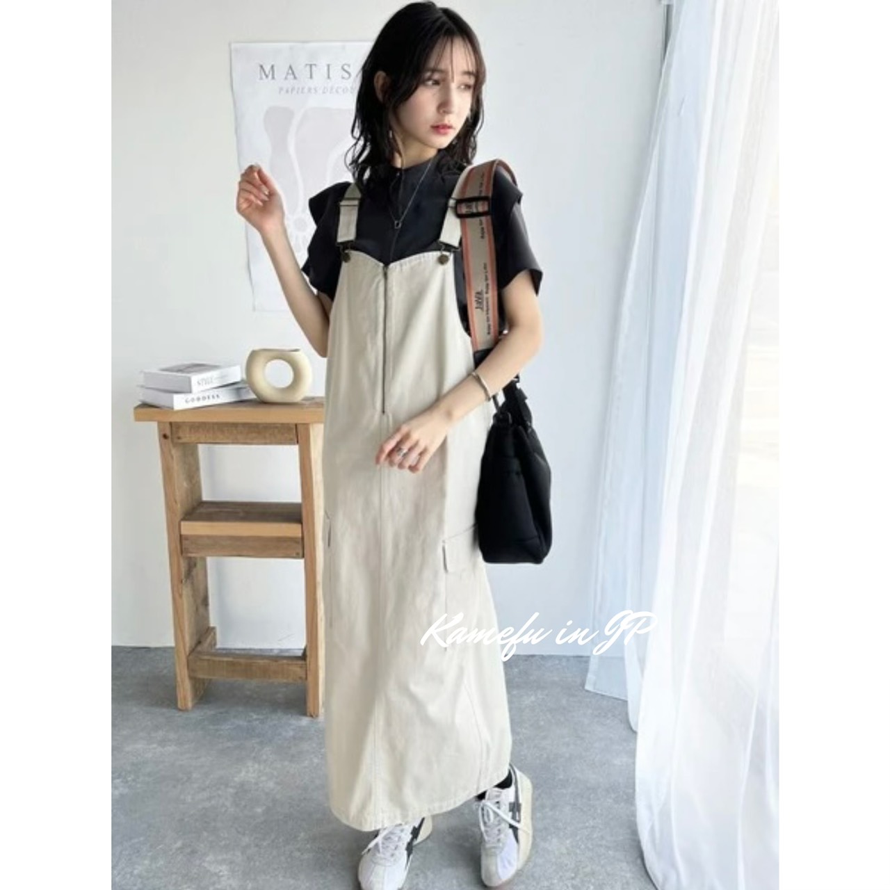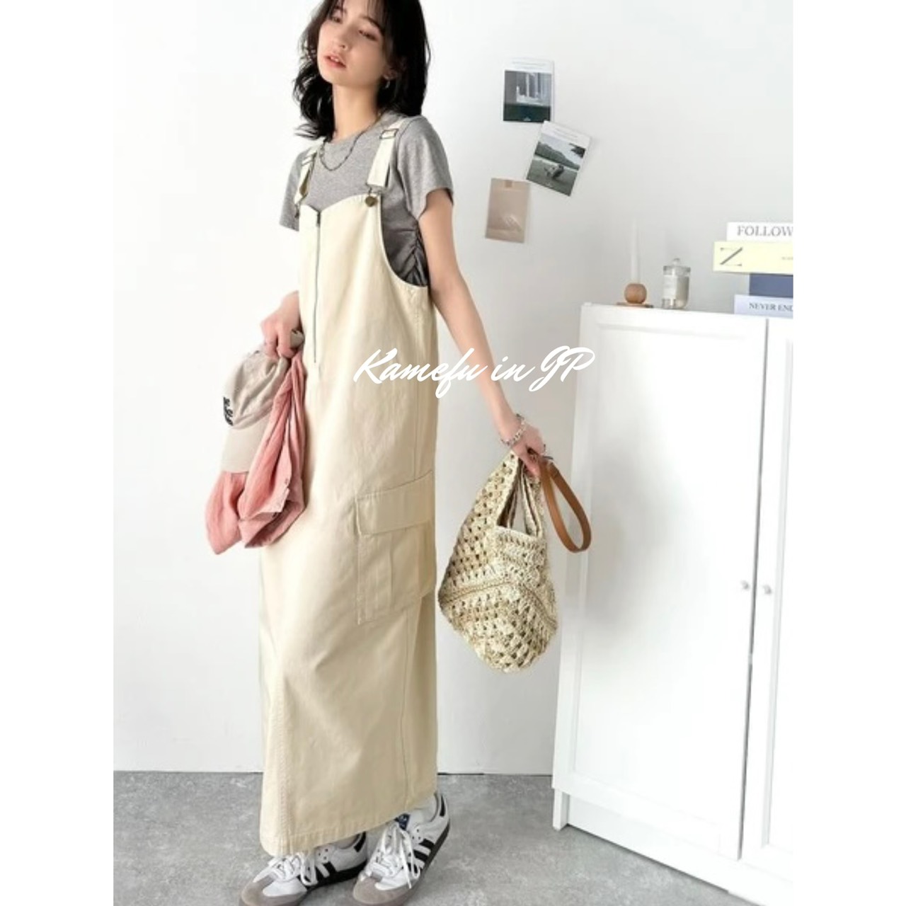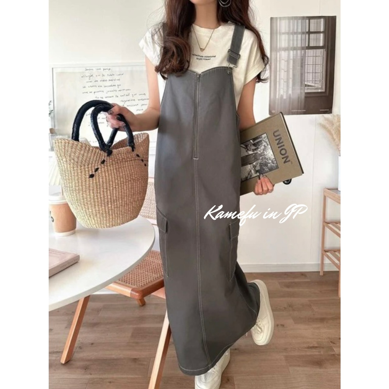 休閒縫線拉鍊純棉大口袋吊帶長裙 – 龜婦的生活