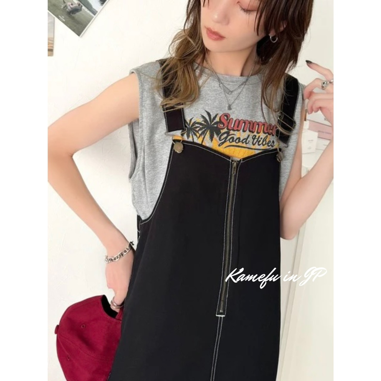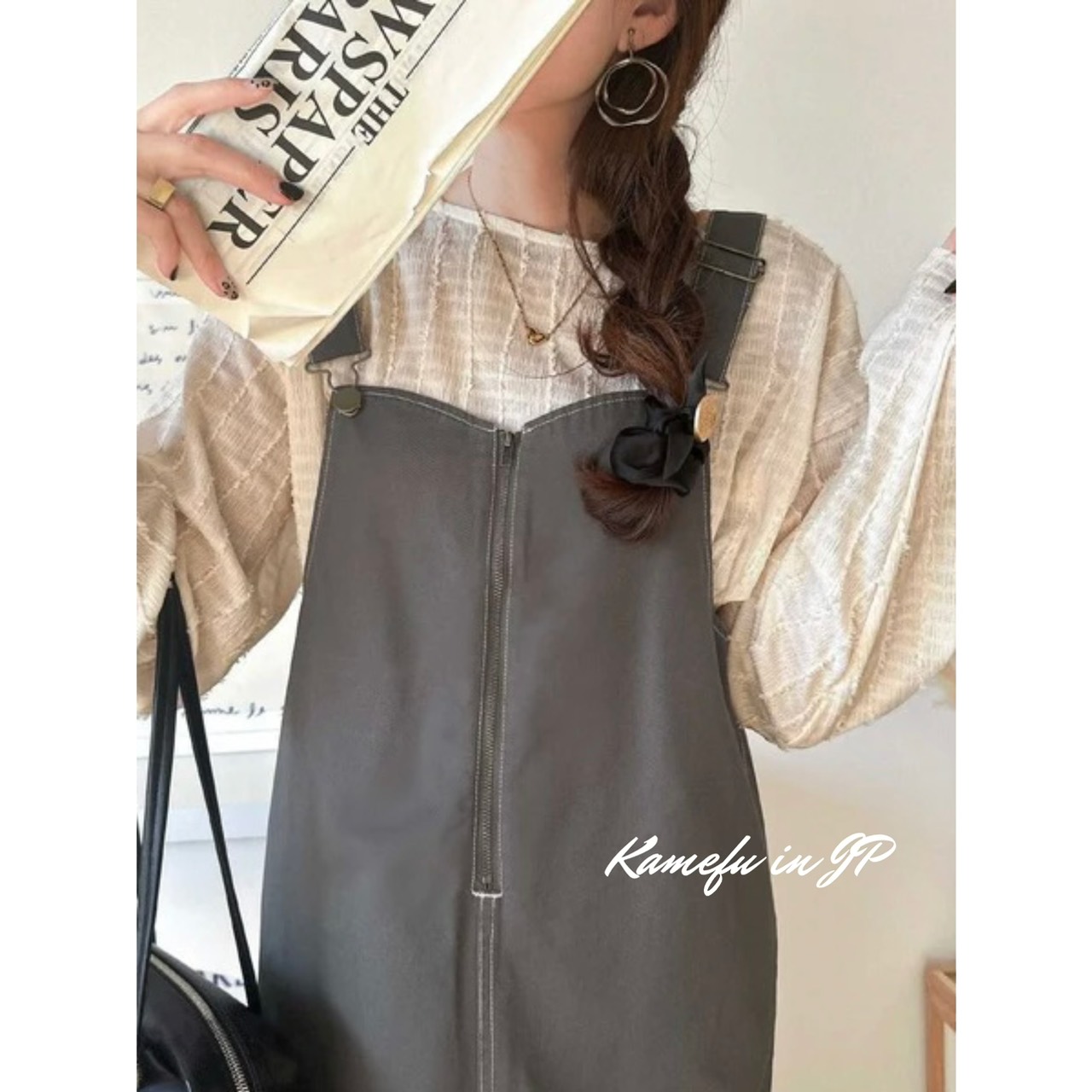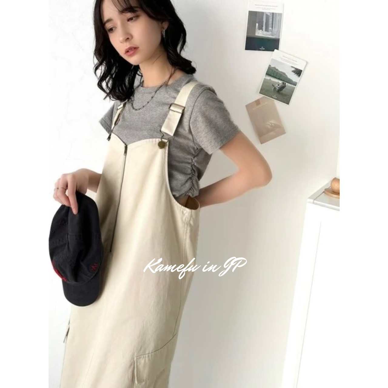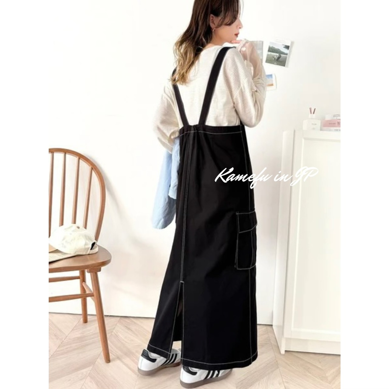 休閒縫線拉鍊純棉大口袋吊帶長裙 – 龜婦的生活