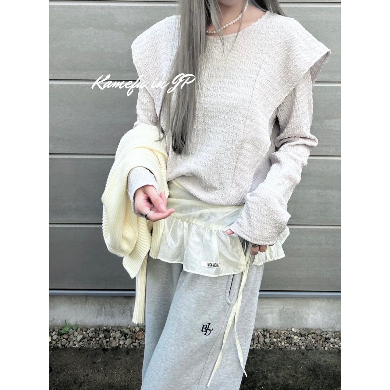 氣質飄逸荷葉邊皺褶緹花上衣 – 龜婦的生活