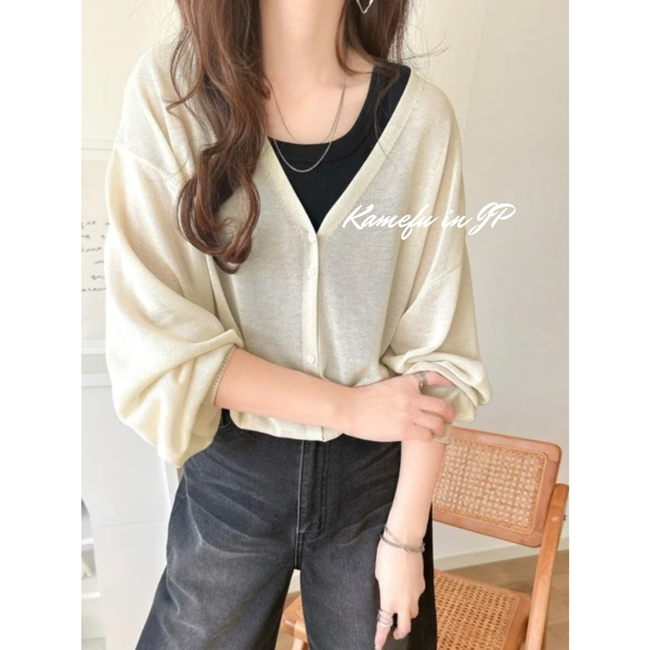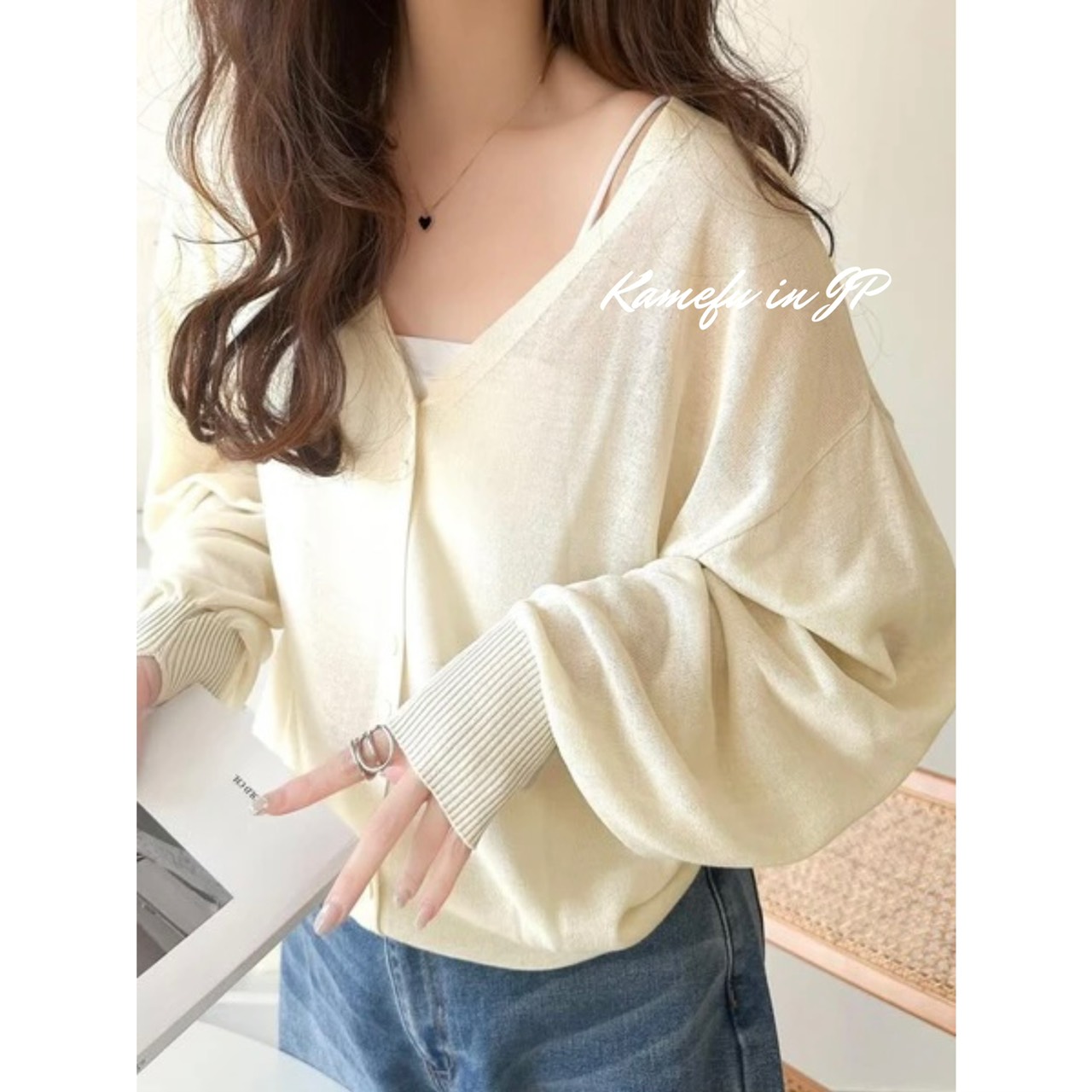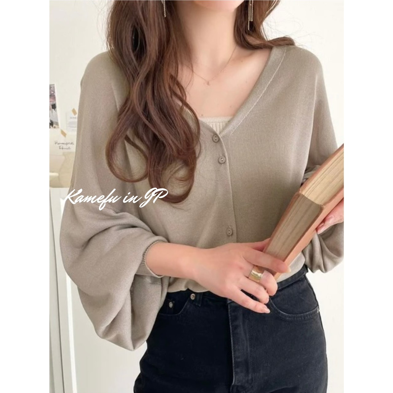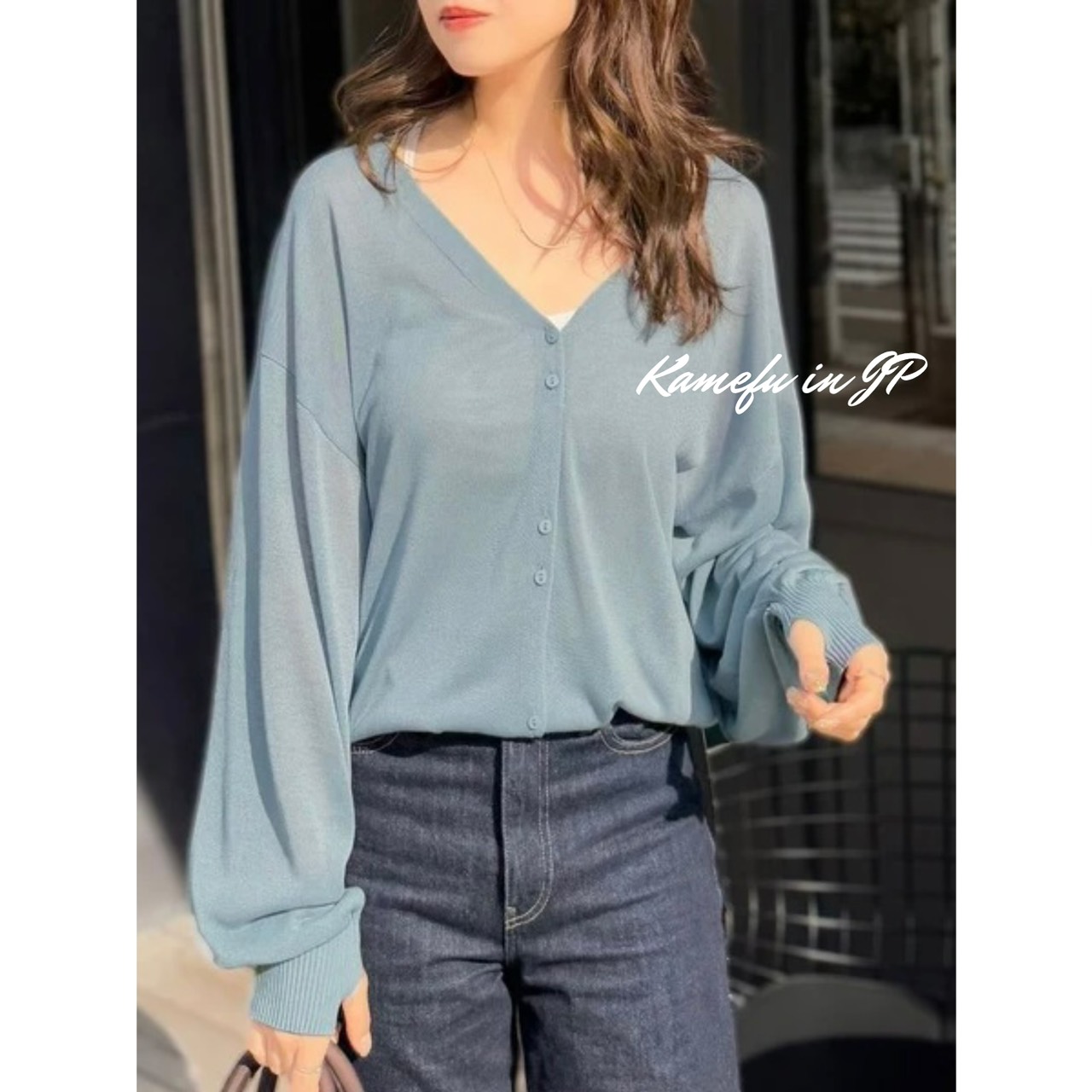 清透泡泡袖V領針織開襟外套 – 龜婦的生活