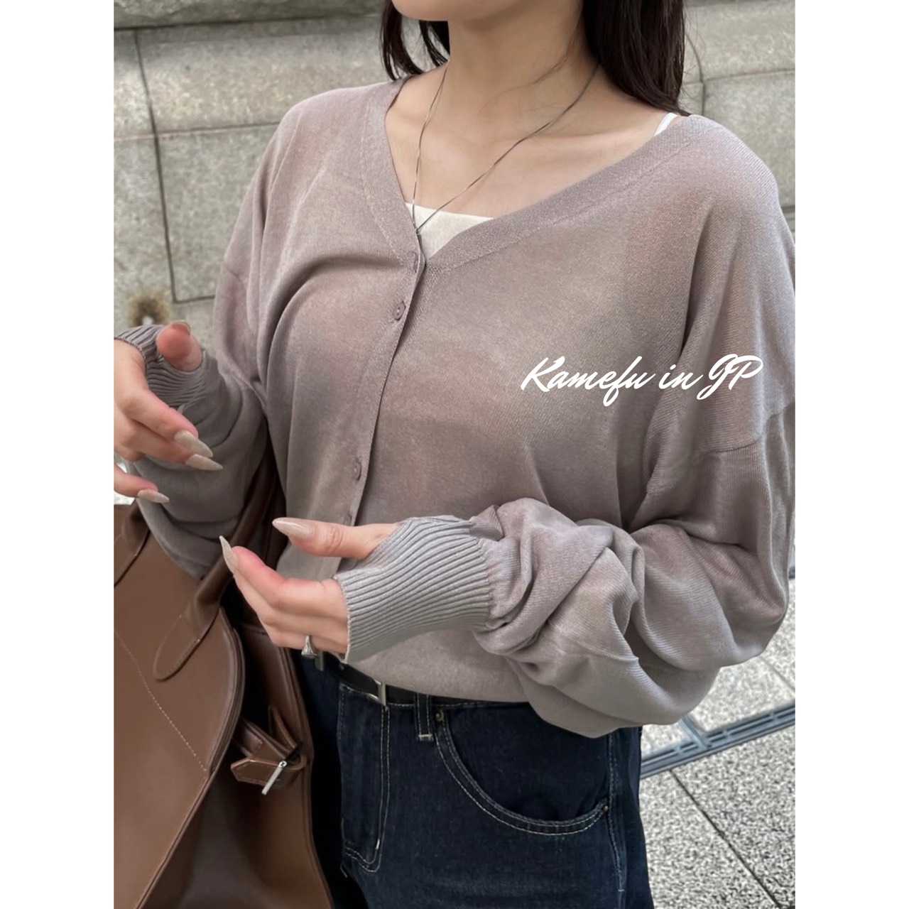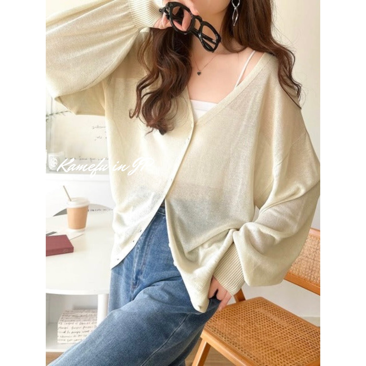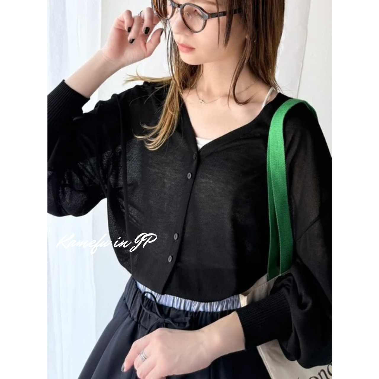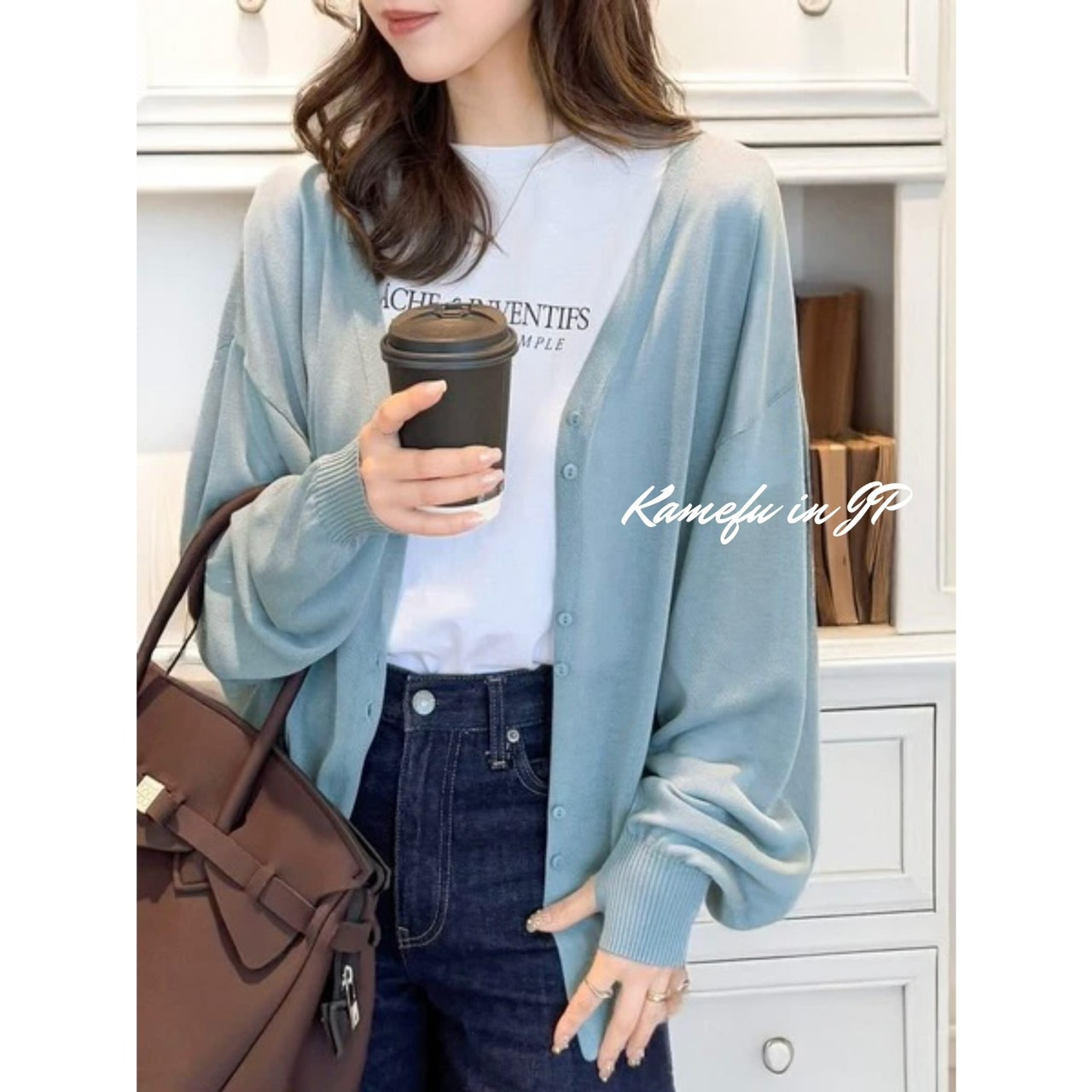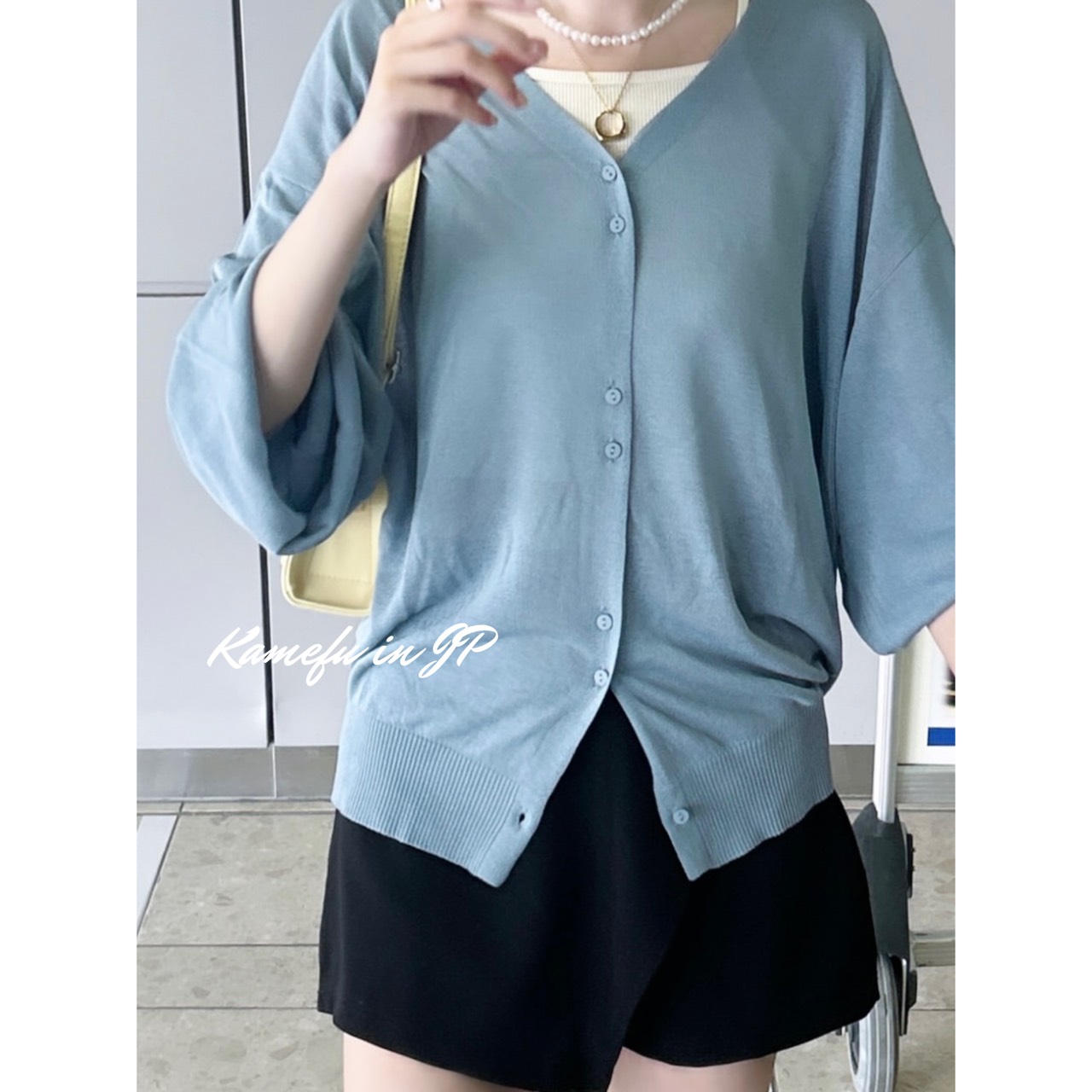 清透泡泡袖V領針織開襟外套 – 龜婦的生活