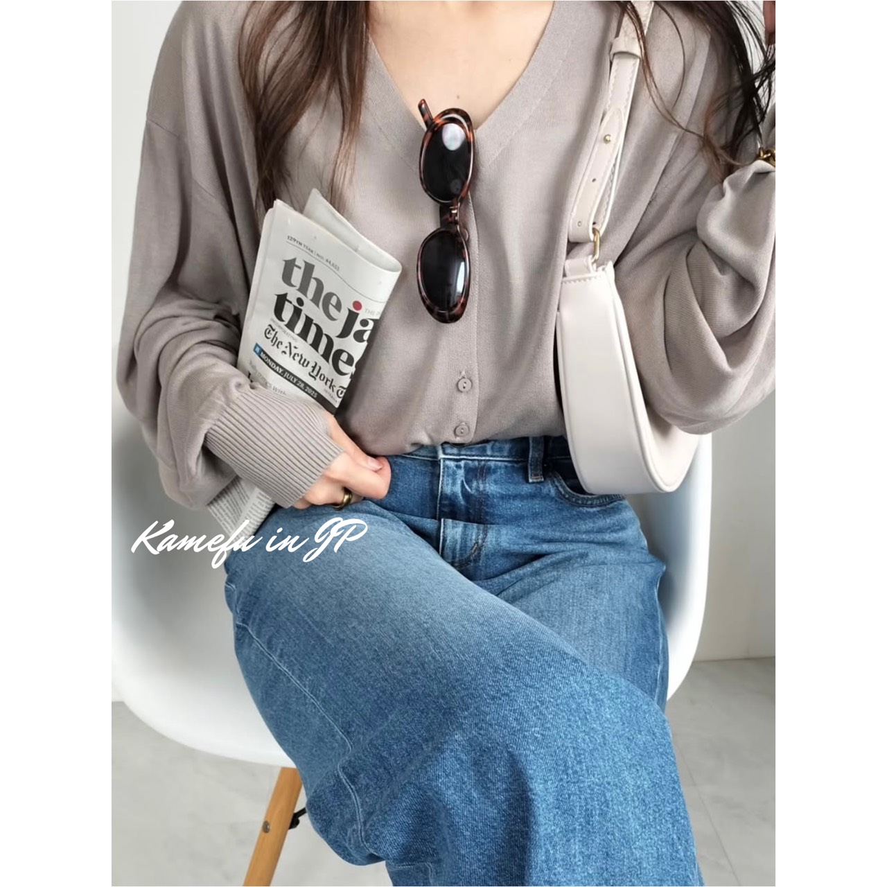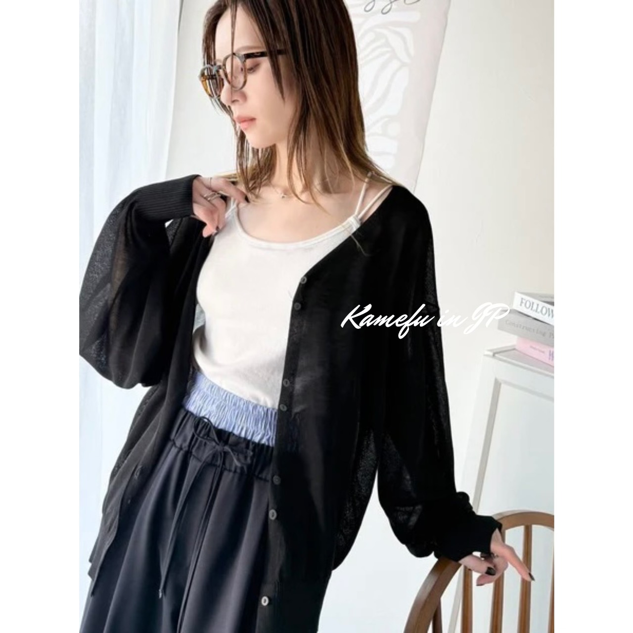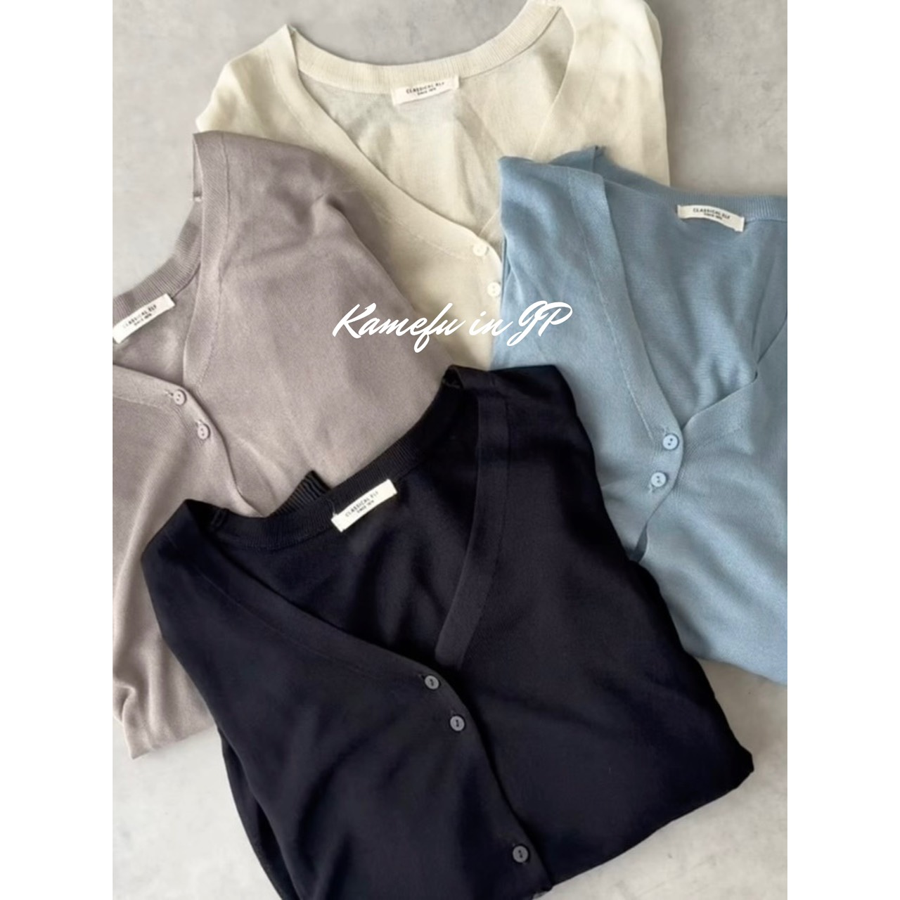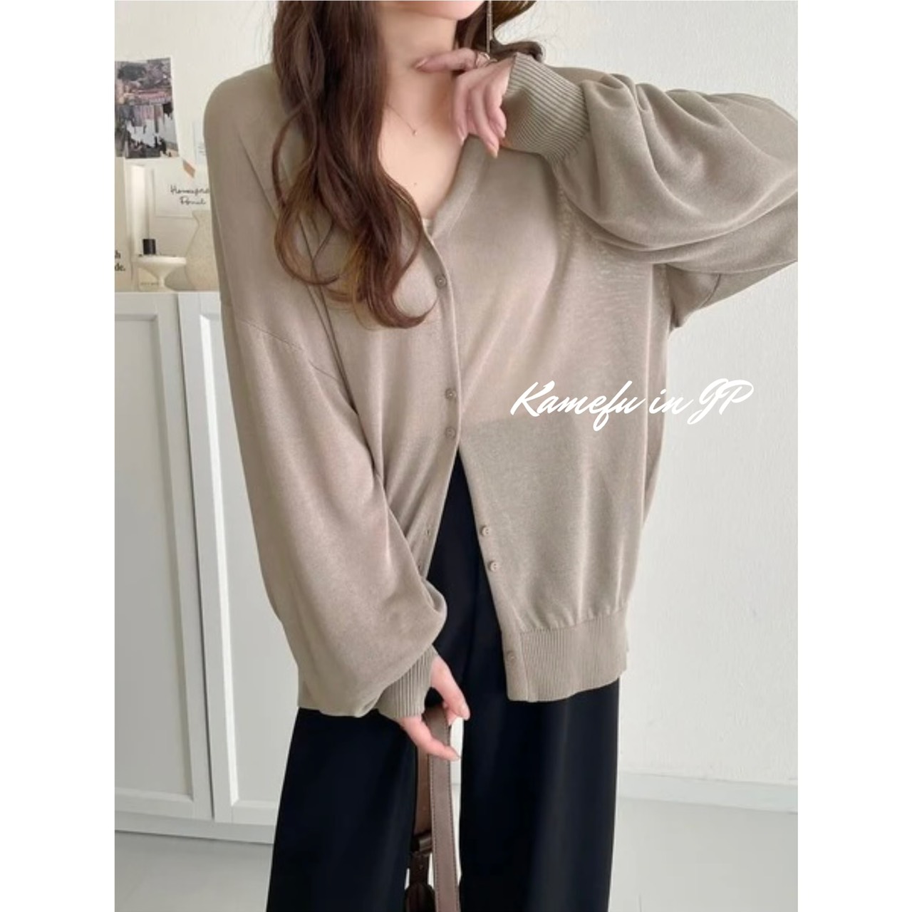 清透泡泡袖V領針織開襟外套 – 龜婦的生活
