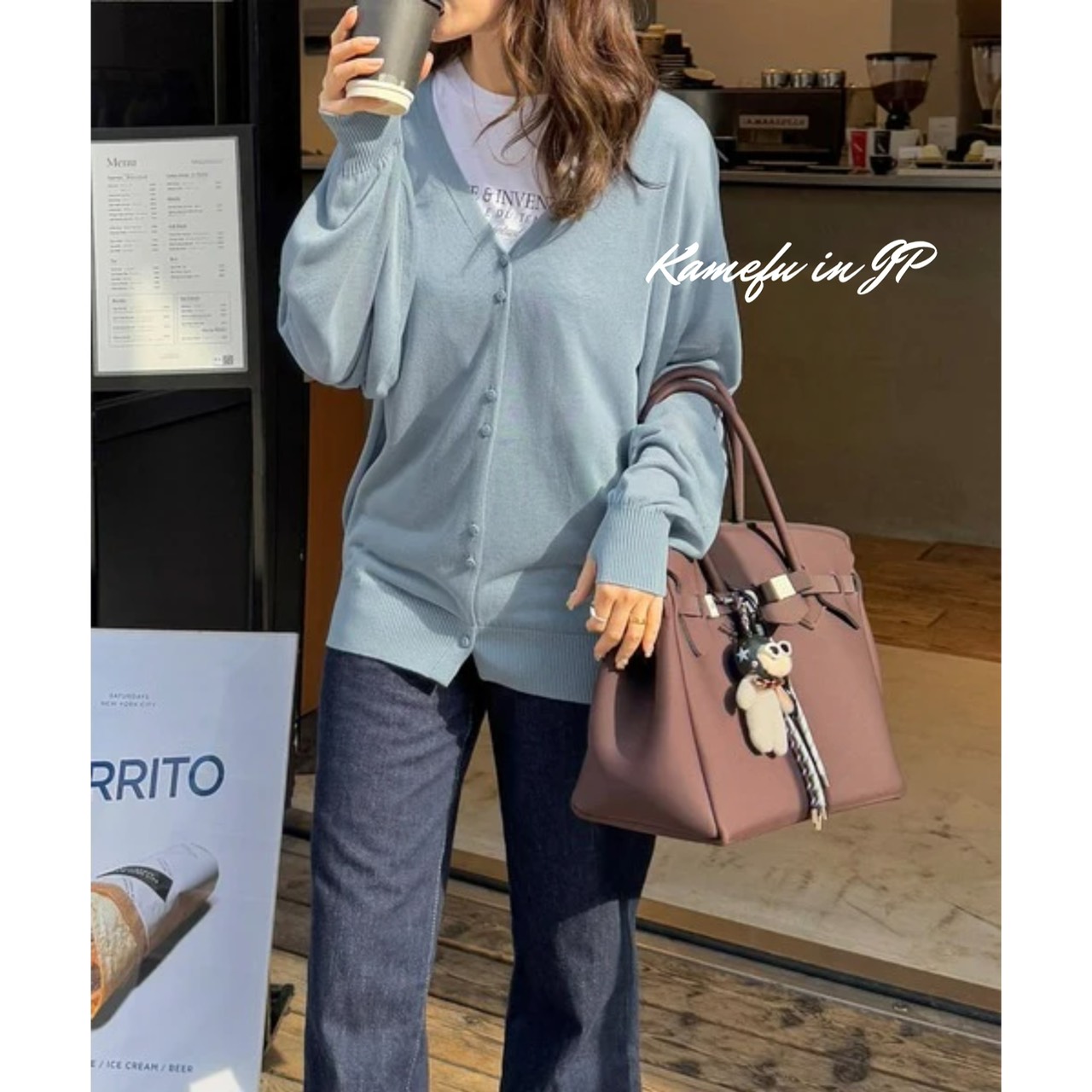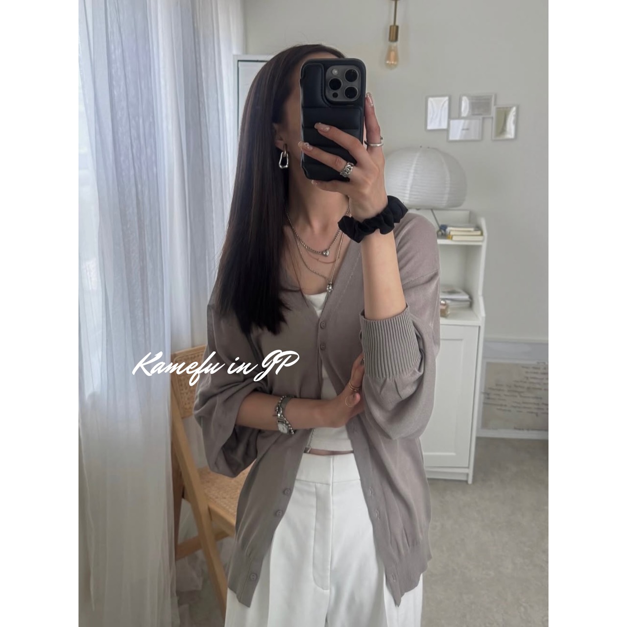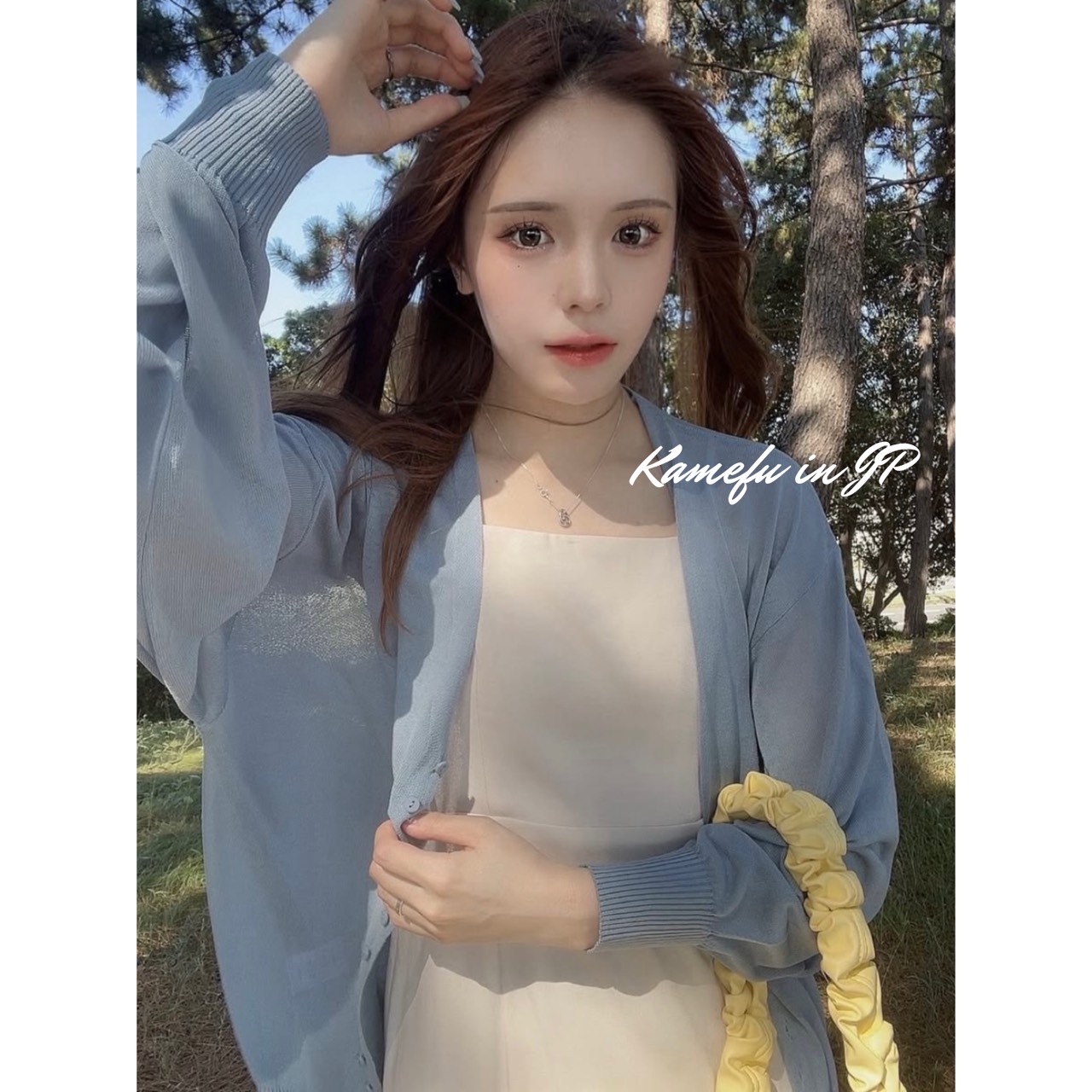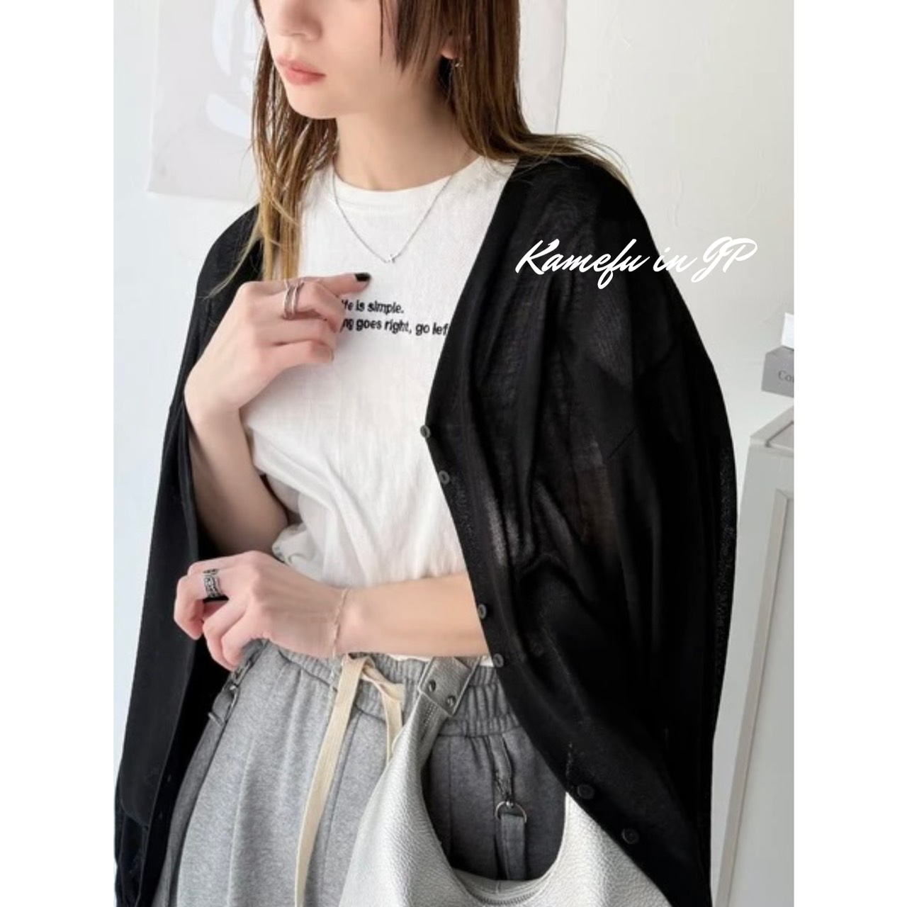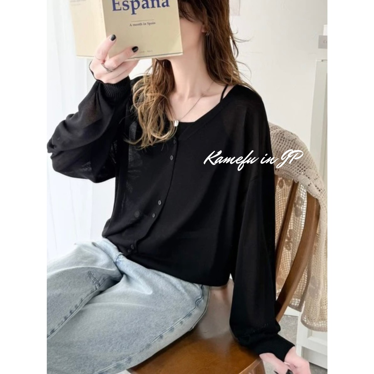 清透泡泡袖V領針織開襟外套 – 龜婦的生活