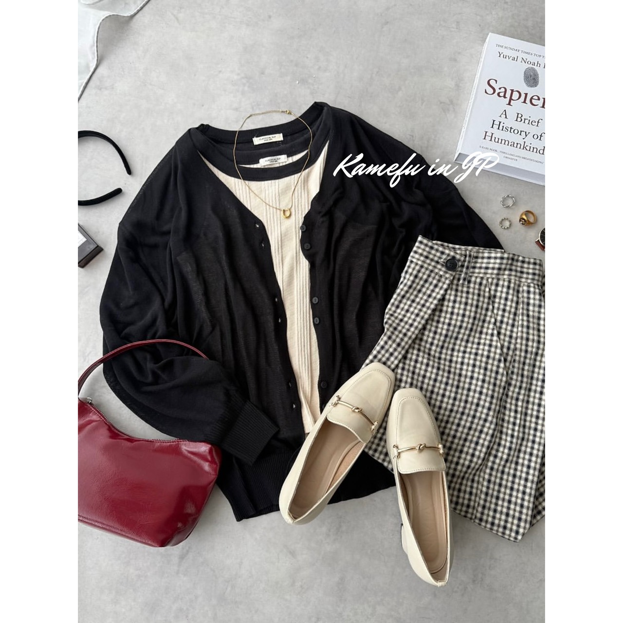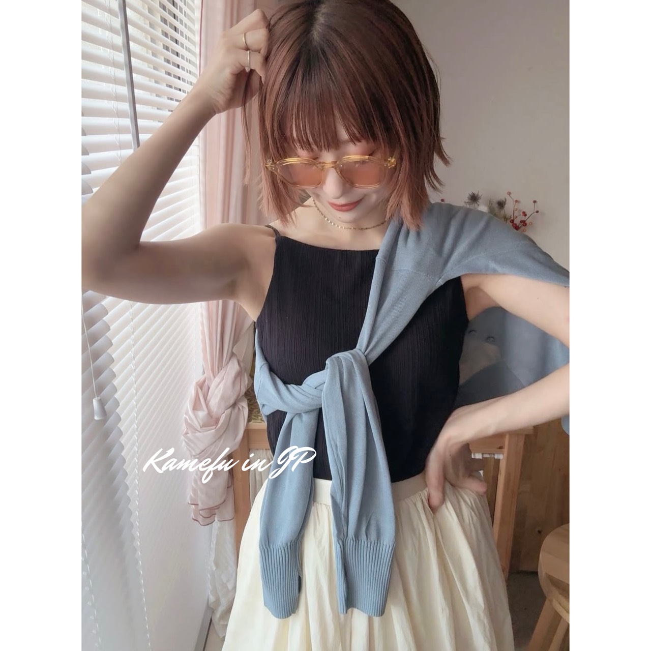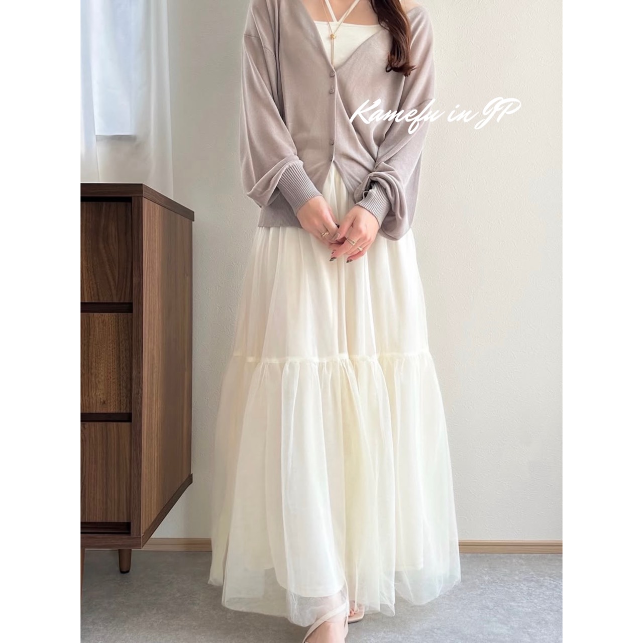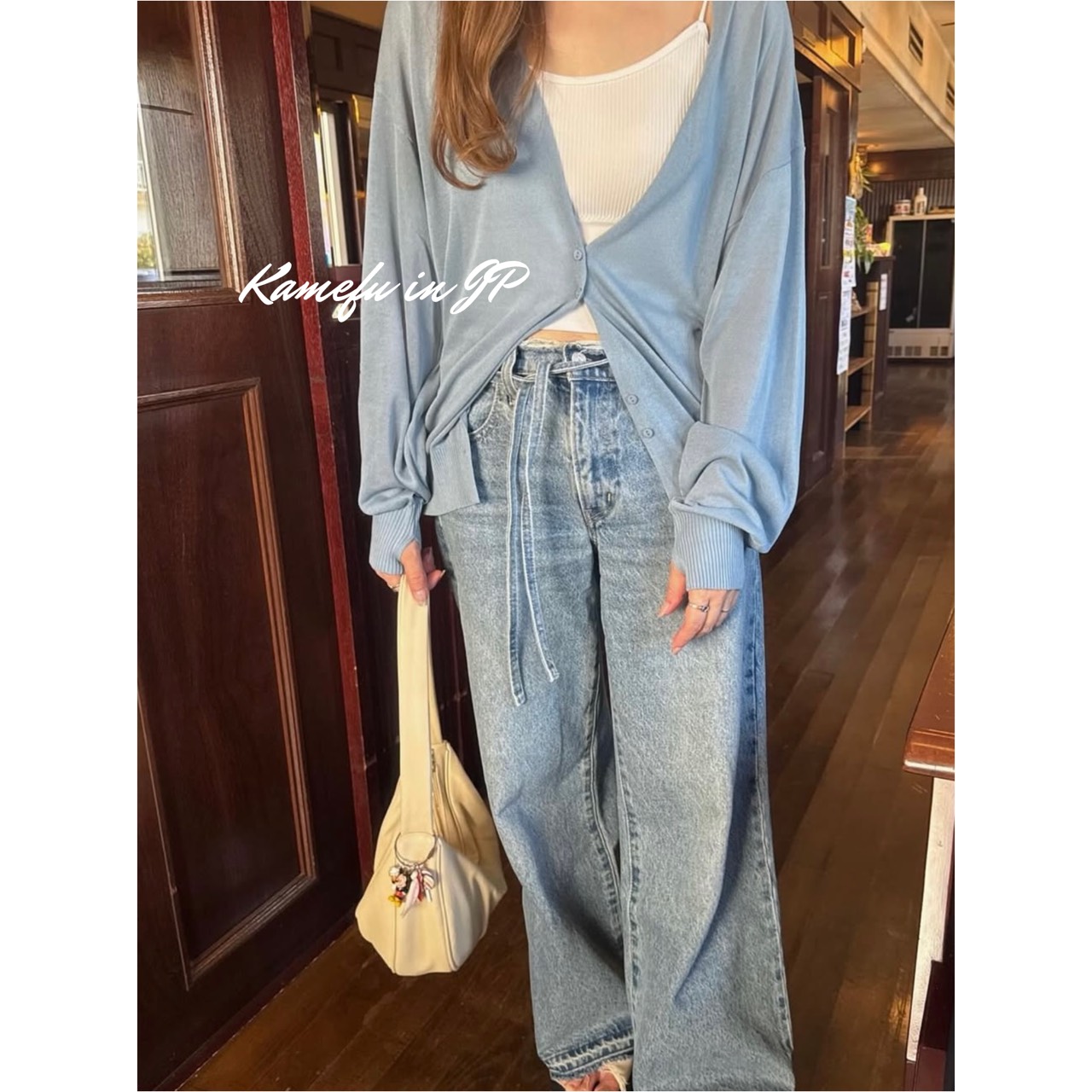 清透泡泡袖V領針織開襟外套 – 龜婦的生活