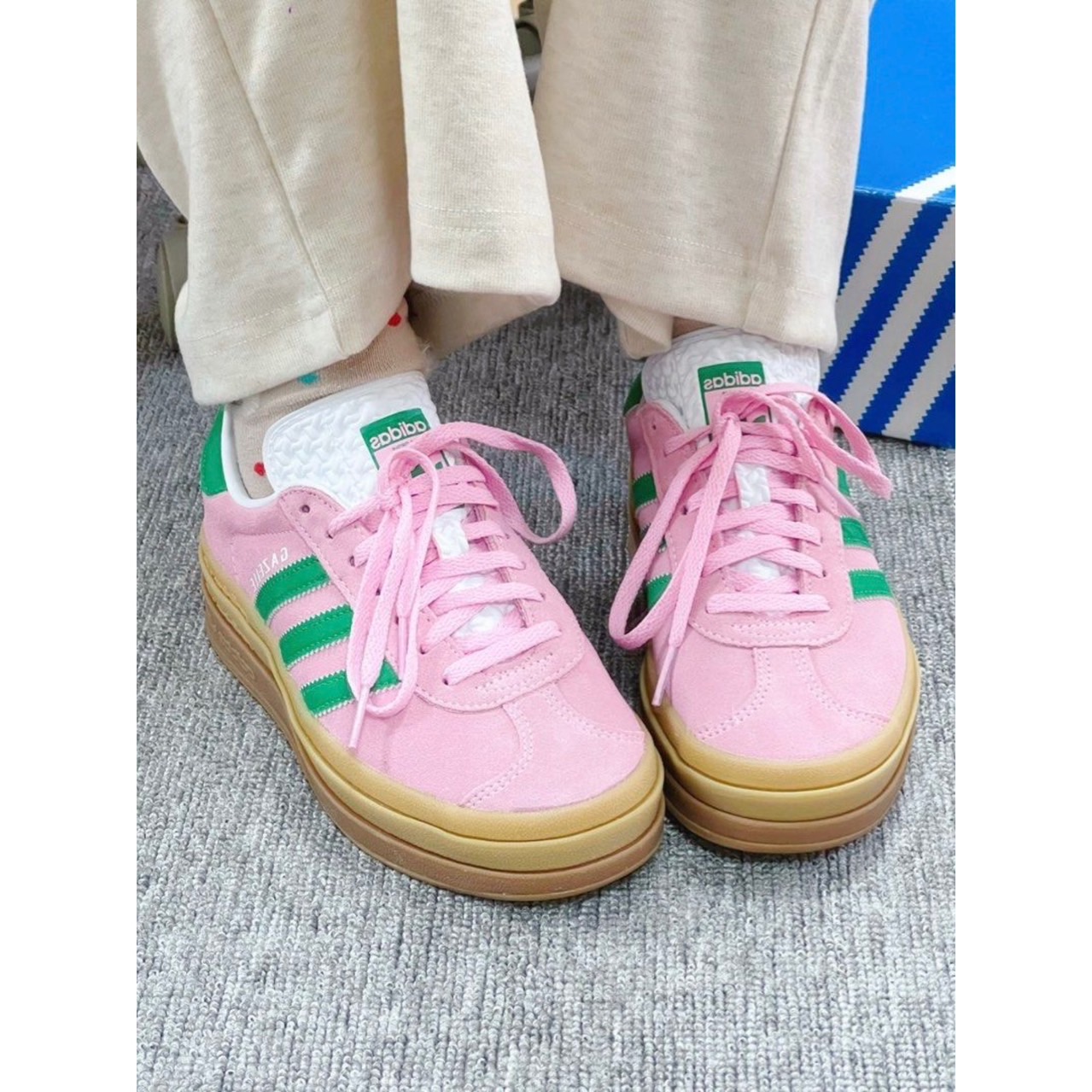 ADIDAS GAZELLE BOLD 櫻花粉×綠 – 龜婦的生活