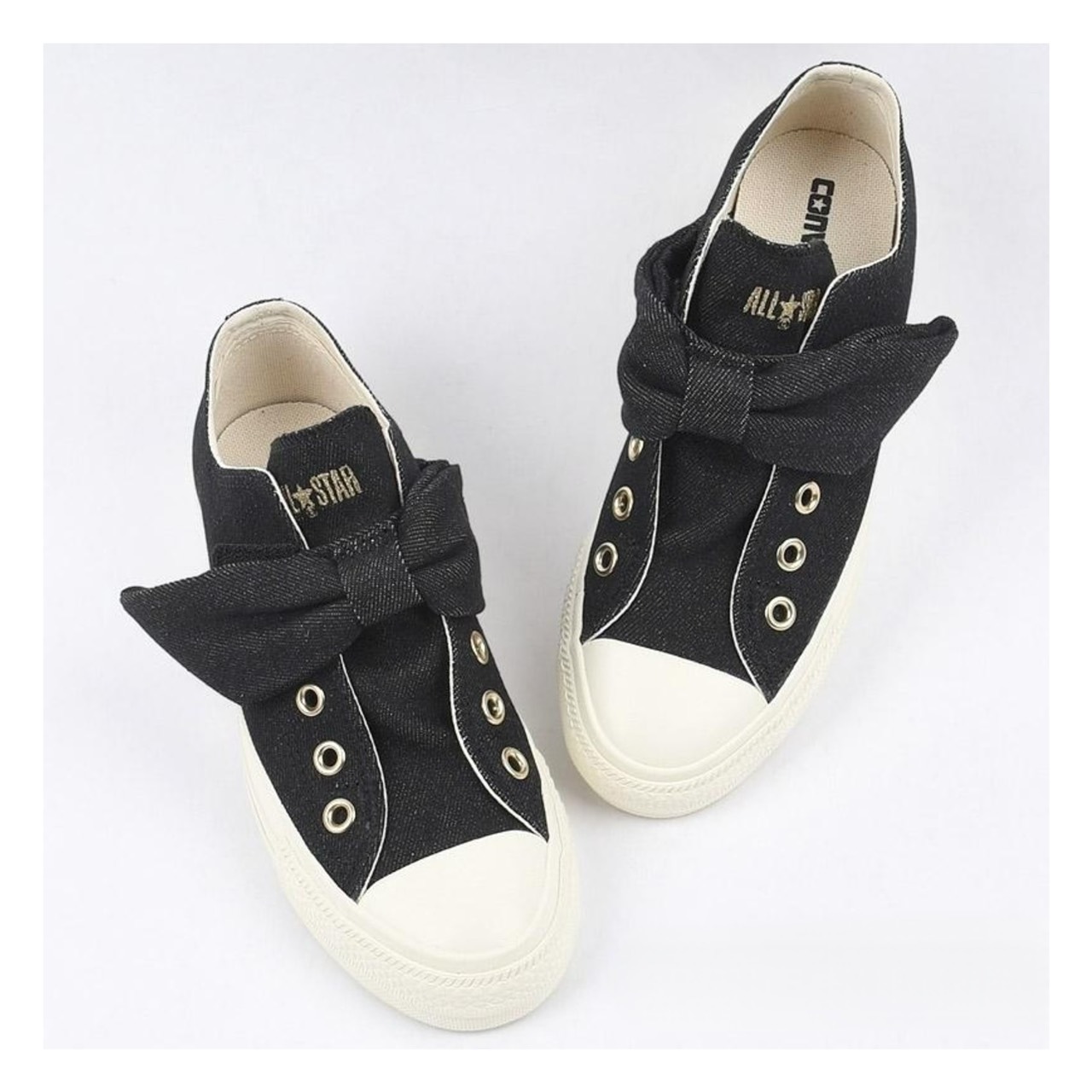 Converse 丹寧蝴蝶結魔鬼氈懶人帆布鞋